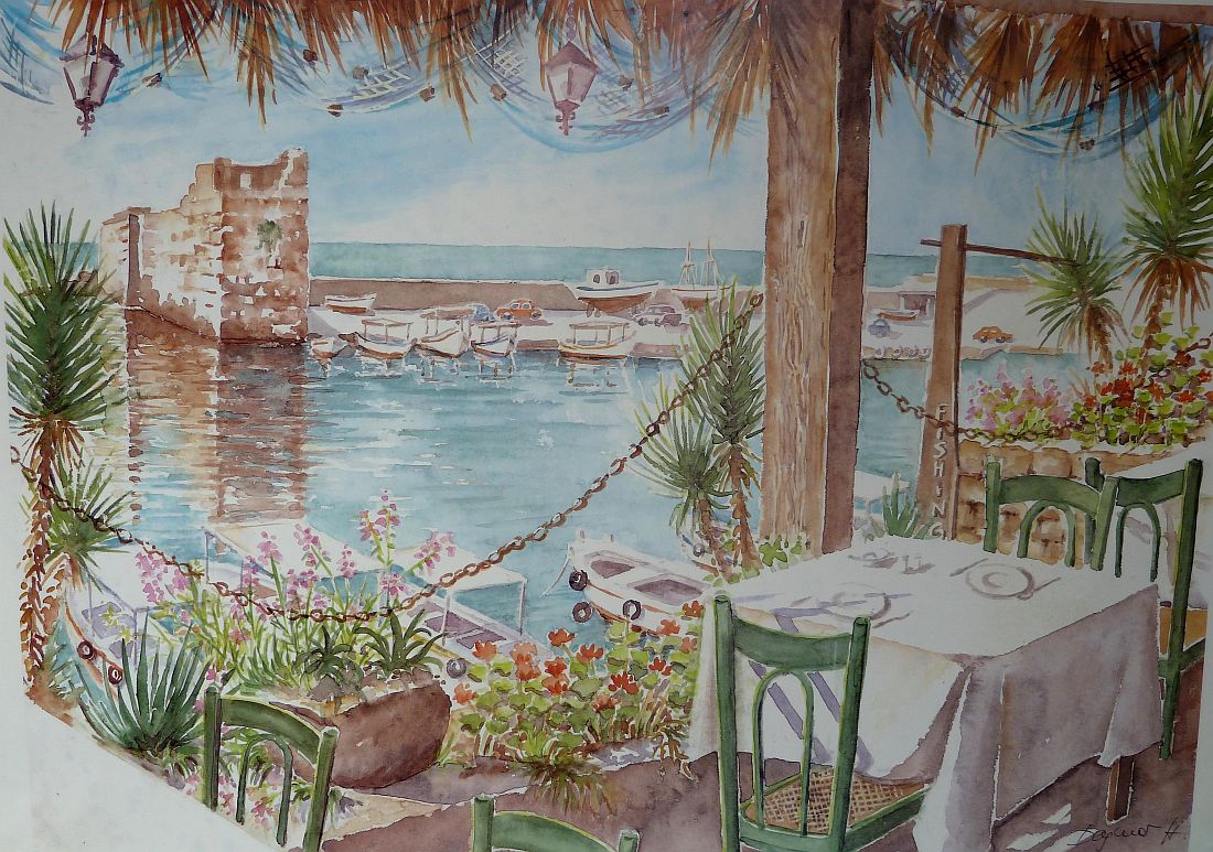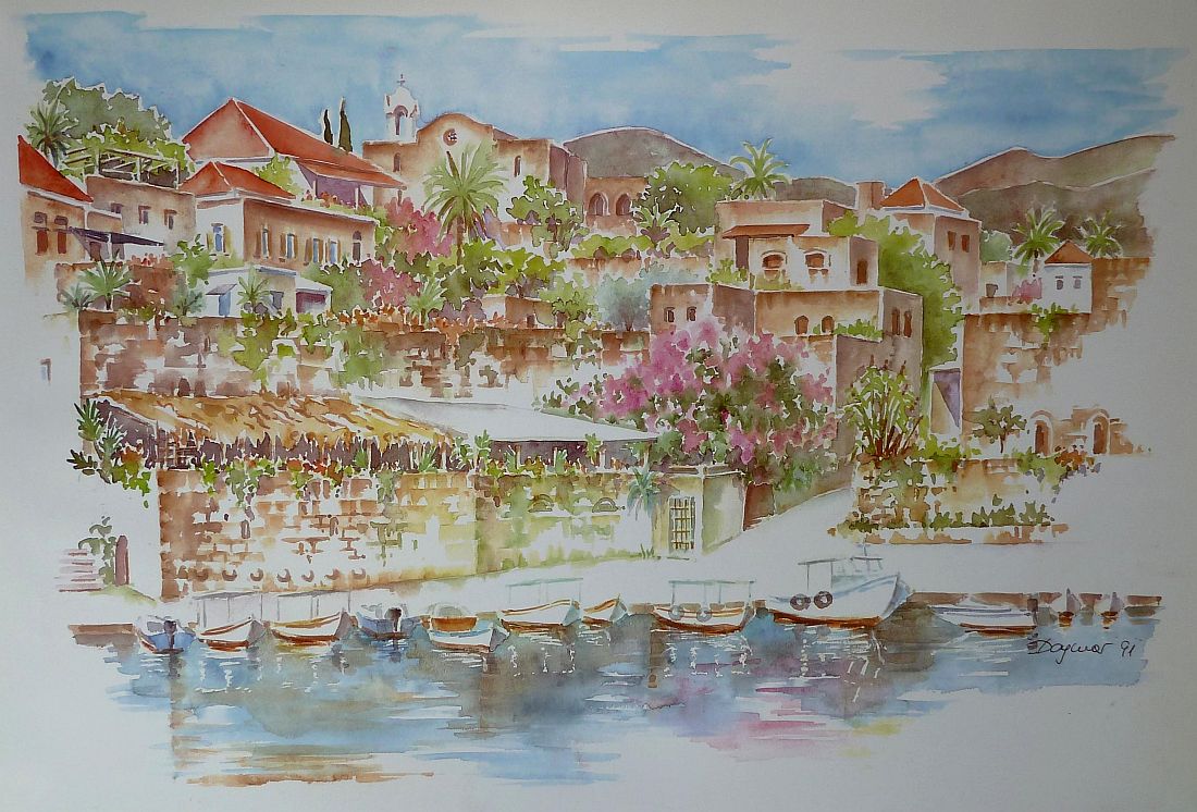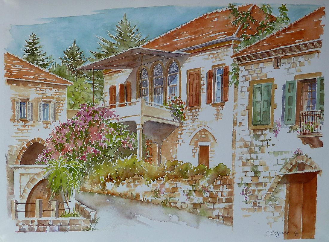 Dagmar Hodgkinson stellt wieder ihre Aquarelle im Libanon aus.