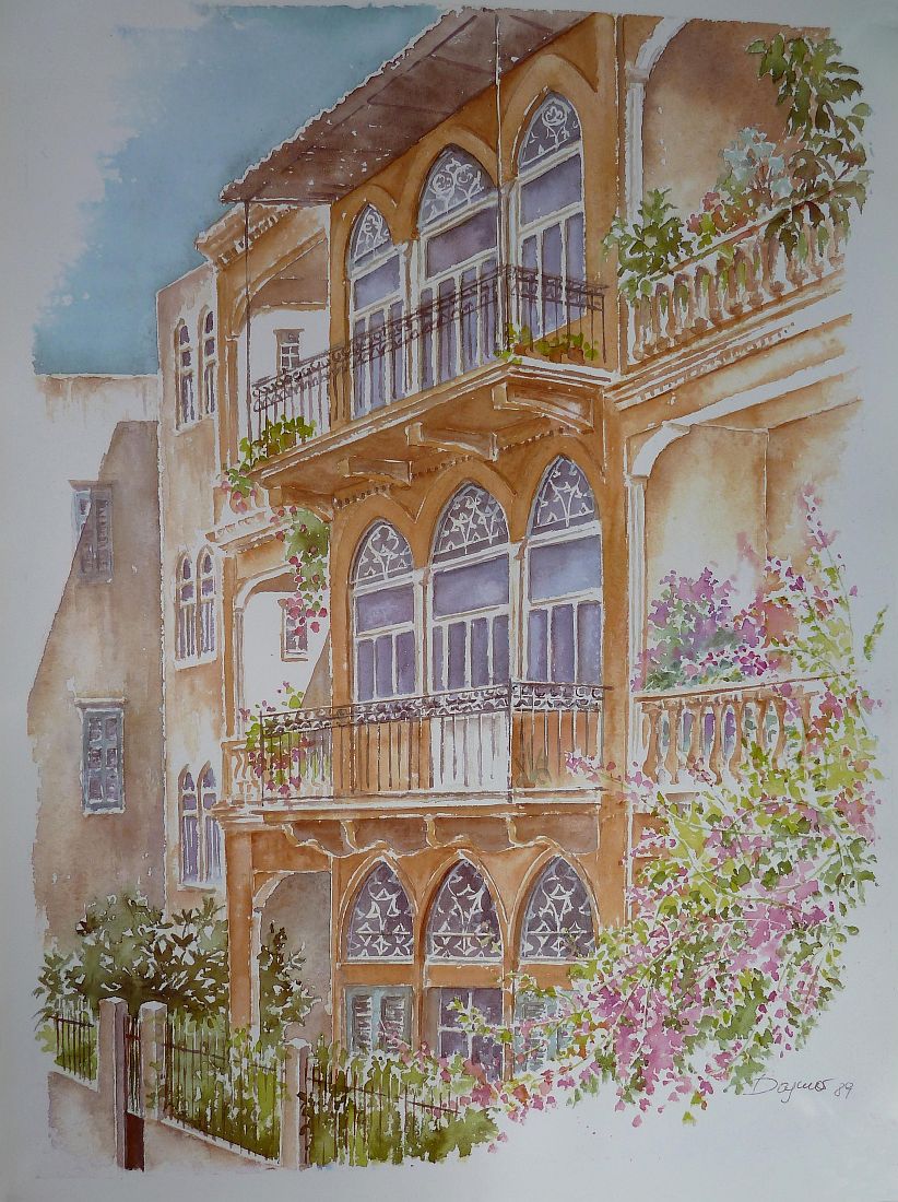 Trotz des grausamen Krieges zeigen ihre Bilder immer die schönen Seiten des Libanons: die typische lokale Architektur, eingebettet in die sonnige Natur. "Man muss sich doch freuen können an einem Bild", meinte sie. Orte wie Byblos, Deir el Kamar, Ain Aar, Amchit, Baabda, Balamand, Batroun, Beit Chebab, Ghosta, Mairouba, Saida, Tripoli, Salima etc. waren beliebte Motive für ihre Bilder. Einige Beispiele finden Sie hier unten in der Galerie.